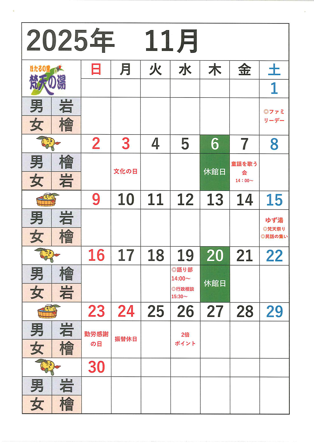 お祭りを楽しんだあとは、「梵天の湯」で日帰り温泉をおたのしみください。
